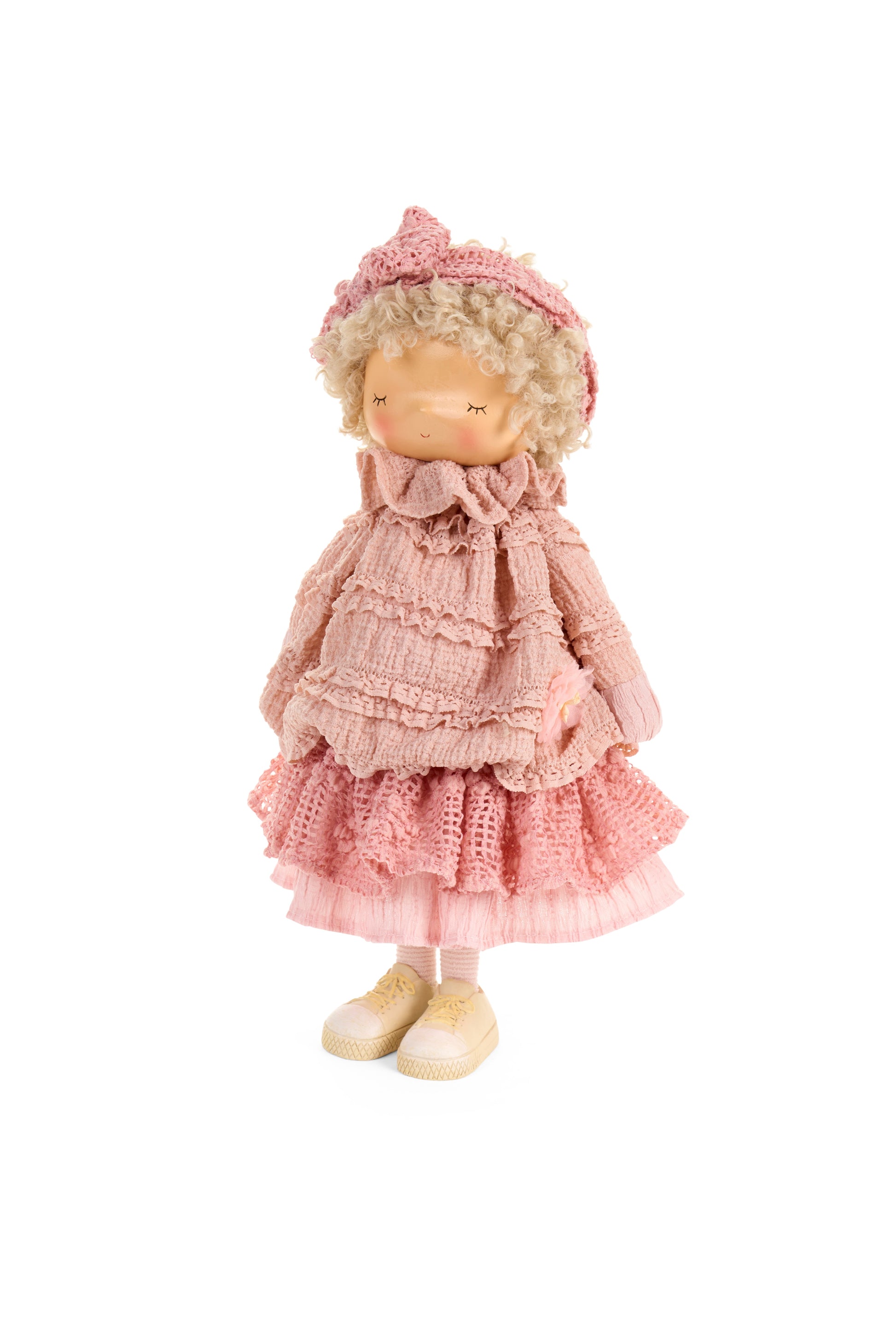 Aggiungi un tocco di tenerezza e poesia alla tua casa con questa incantevole bambola decorativa della collezione Fiorirà di Nuvole di Stoffa. Realizzata con cura artigianale, indossa un raffinato abito in pizzo rosa, impreziosito da balze e dettagli ricamati. Con i suoi 49 cm di altezza, è un complemento d'arredo perfetto per dare un'atmosfera sognante e romantica a ogni stanza.