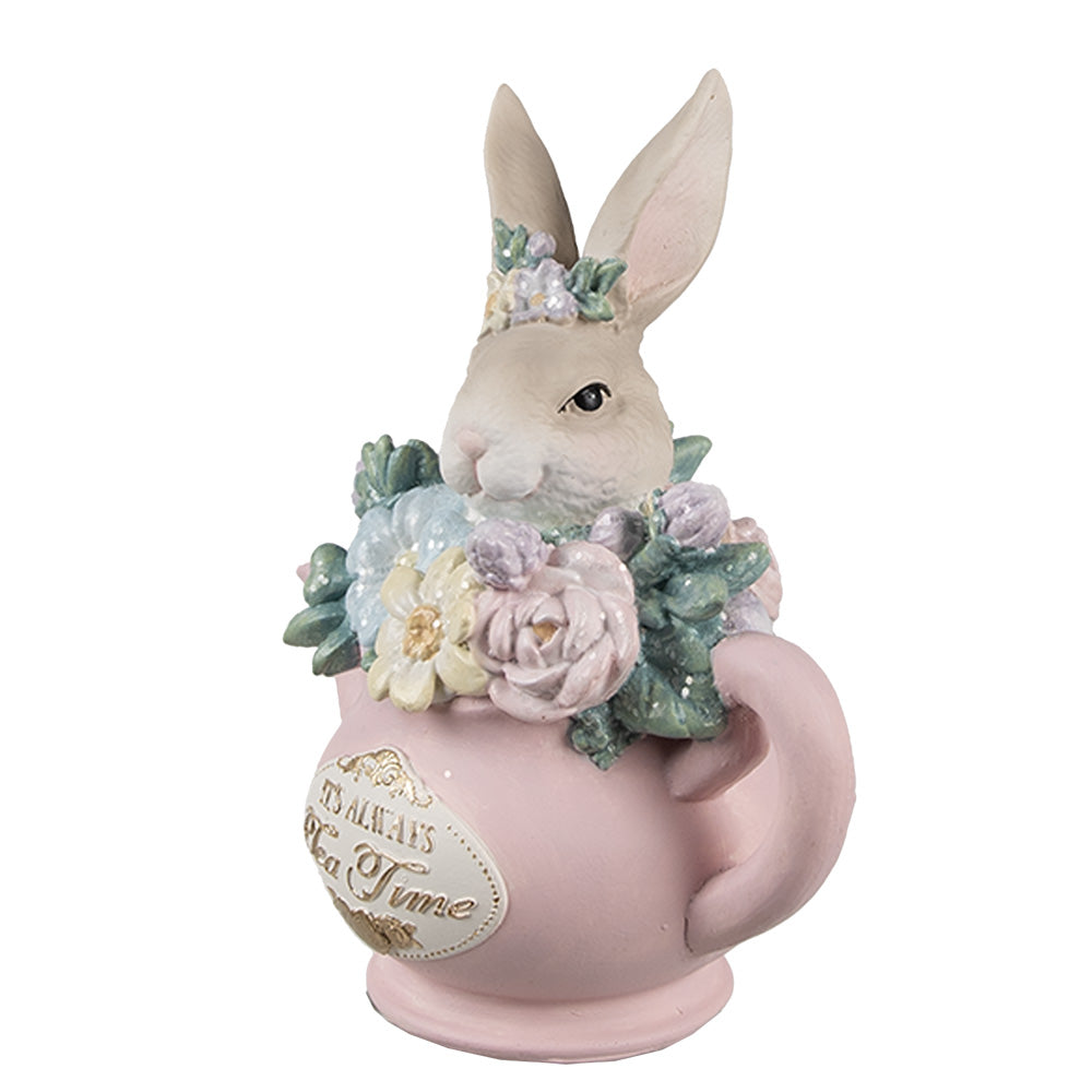 Statuetta decorativa pasquale che raffigura un coniglietto nella teiera. Realizzata in poliresina con dettagli in rosa, verde, giallo e beige, questa composizione aggiunge un tocco festivo e giocoso a qualsiasi ambiente. Dimensioni: 13x8x14 cm cm. Perfetta per decorare la casa durante le festività pasquali o come regalo originale.