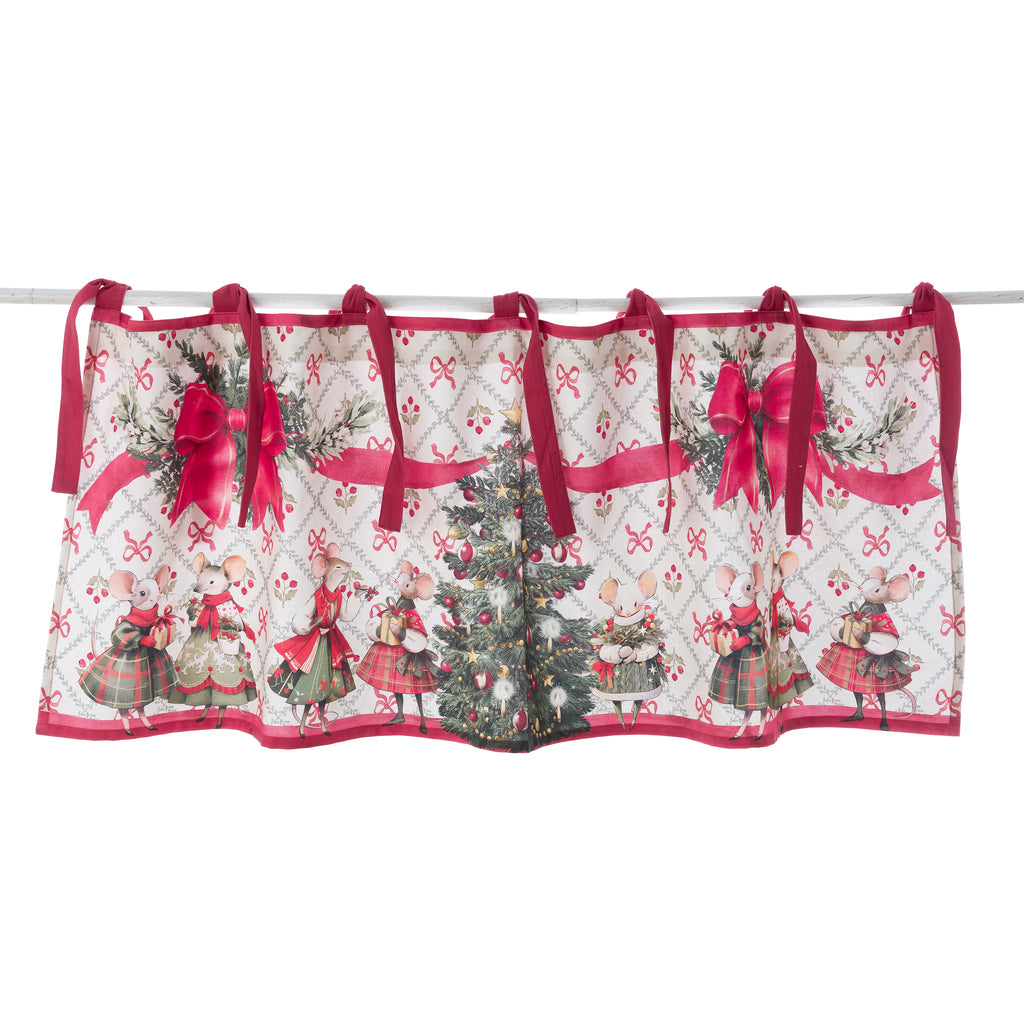 Questa mantovana Blanc Mariclò è pensata per completare le tende con un tocco elegante e festoso. Realizzata in cotone e arricchita da dettagli a tema natalizio, trasforma la finestra in un angolo accogliente, perfetto per respirare la magia delle feste. Ideale per chi ama uno stile shabby chic con atmosfera natalizia.