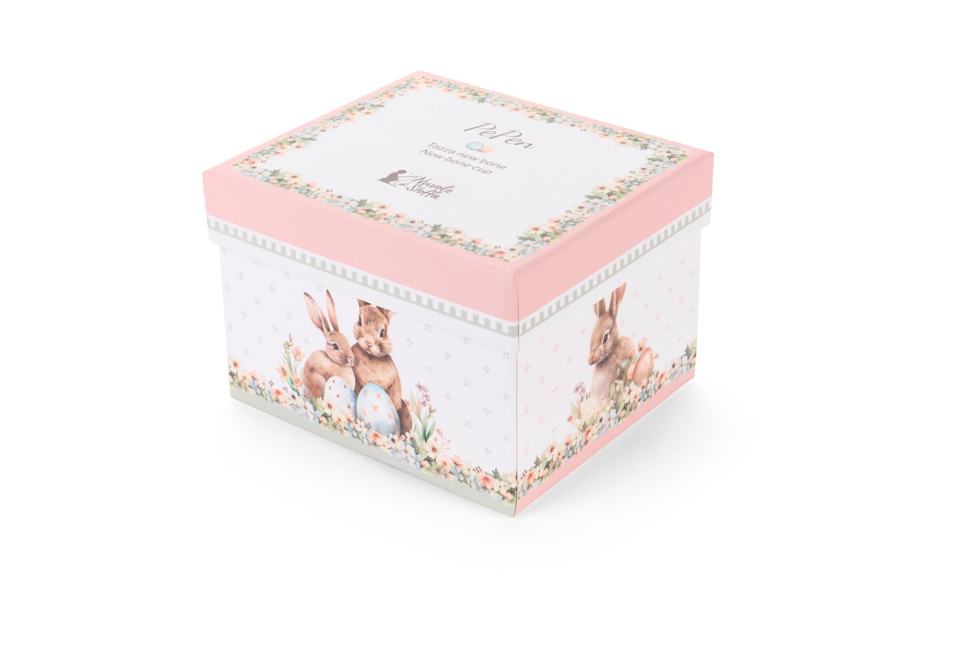 Inizia la giornata con la dolcezza della linea PePen di Nuvole di Stoffa. Questa tazza mug, decorata con teneri coniglietti e uova di Pasqua, è perfetta per gustare le tue bevande calde preferite durante il periodo primaverile. Il suo design classico e le tonalità delicate la rendono un regalo ideale o un perfetto complemento per una colazione a tema.